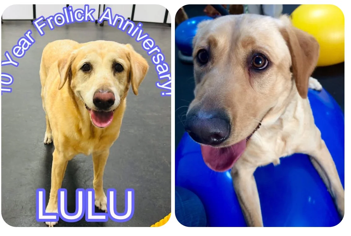 Celebrating dogs who attended Frolick dayboarding for 10+ years, wow!